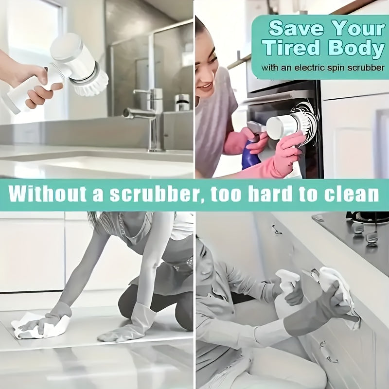 Make bathroom & kitchen cleaning effortless with this cordless rechargeable scrubber brush. Includes 5 interchangeable heads for tiles, sinks & more.