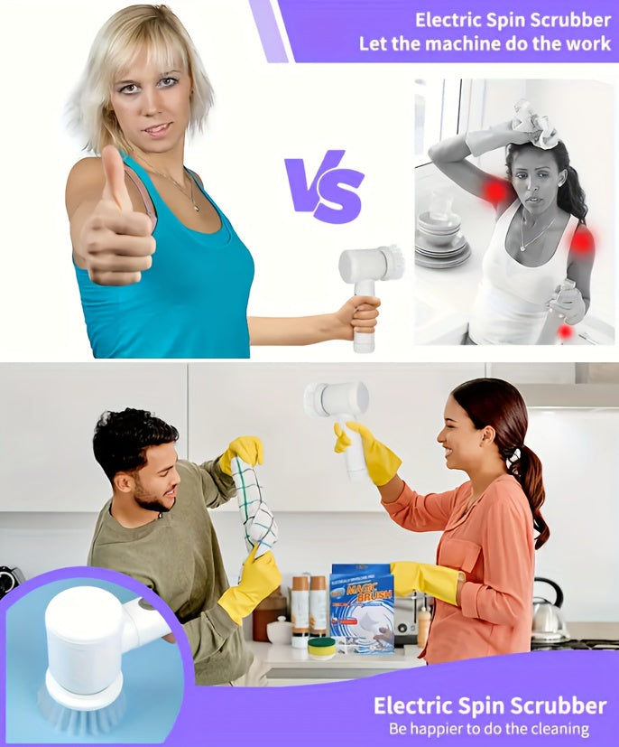 Electric Spin Scrubber – Cordless Rechargeable Brush, 5 Heads + Extension Handle