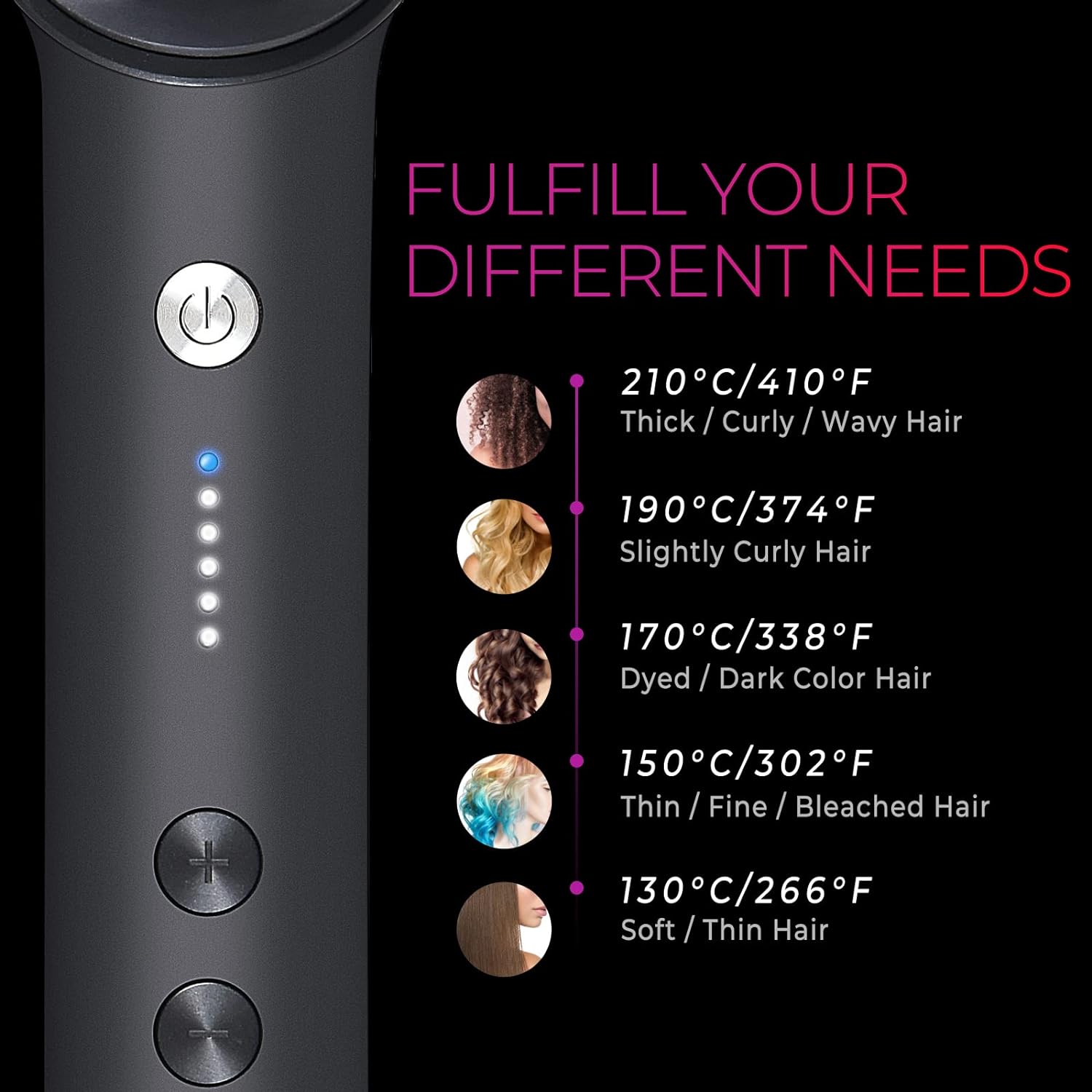5 Heat Settings (130°C – 210°C): Suitable for all hair types, from fine to coarse.